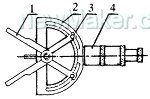 测量时采用面接触,测量爪1的工作面通过自己的回转中心并延伸到另一侧,以便确定β角。测量爪用螺栓固定在回转中心上,为保证其稳定性和准确性,调整β角后,再用螺栓3将测量爪固定在角度盘上(两侧测量爪对中线选用千分尺结构,为实现标准化,可采用标准深度千分尺读数 ,用以测量O′C值。