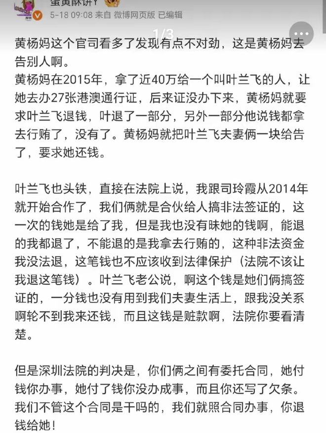 当时的港澳通行证也就几十块,不到一百一张,当时要是走正规程序的线来块的事情,但是黄杨钿甜母亲用来近40万都没有办下来,这说明什么呢?
