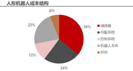 人形机器人产业链上游主要是零部件和软件系统,由各类传感器组成感知层,由芯片及软件算法组成决策层,由各类零部件构成执行层。减速器(占成本36%)、伺服系统(24%)、控制器(12%)是人形机器人三大核心。