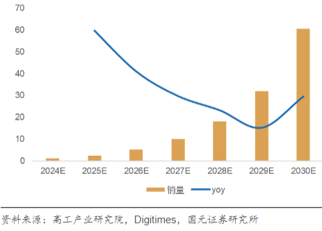 出货量:2024年全球出货量为1.19万台,预计2030年销量将达60万台。