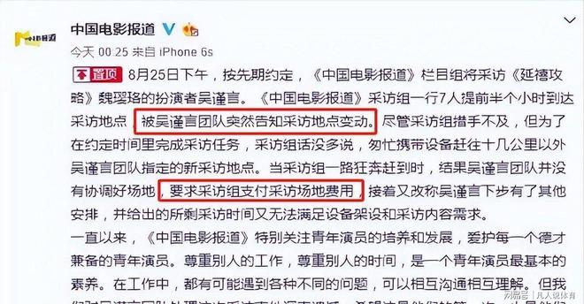 结果到了那,吴的团队竟然还要让采访组支付场地费,还各种推脱,说艺人已经有了下一步安排,时间所剩无几。