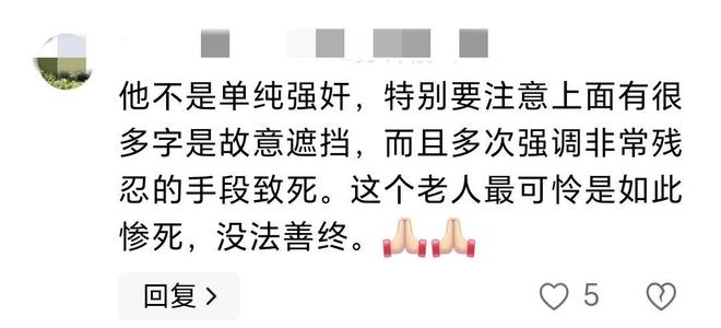 有网友就说了,“他不是单纯,特别注意上面很多字故意遮挡,而且多次强调非常残忍的手段致死,这个老人最可怜,如此惨死,没法善终!”