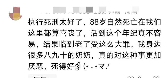 还有人说了,“执行死刑太好了,活到这个年纪真的不容易,结果老了受这么大罪,对这种事非常厌恶”。
