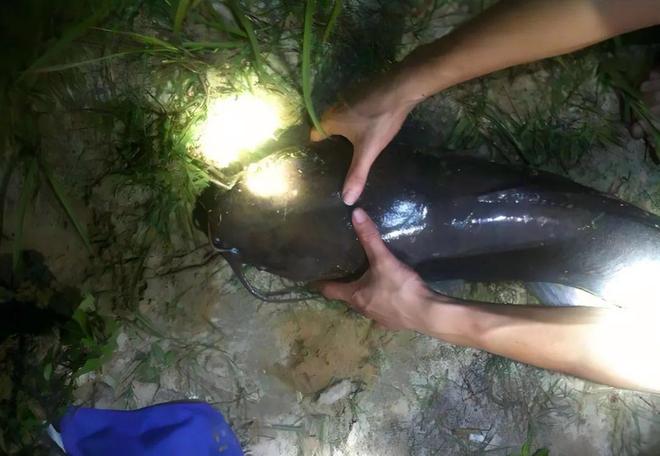 王先生对大连各大水域的鱼类比较了解,但眼前这些鱼却让他感到陌生:“全身漆黑,流线型身体游得特别快,最奇怪的是身上竟然没有鳞片。”出于对生态环境的敏感,他设法捕获了一条。这条鱼体长超过50厘米,重达五六斤,鱼身光滑无鳞,嘴边还长着多根“胡子”。